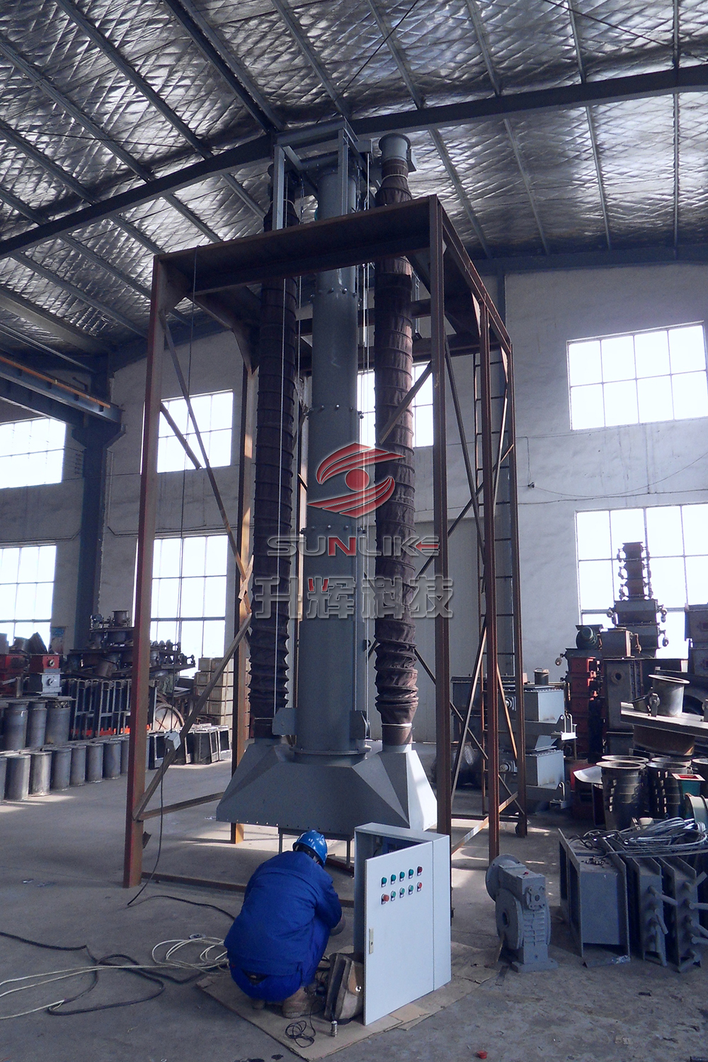8. 安裝卸料收塵罩和伸縮收塵軟管;