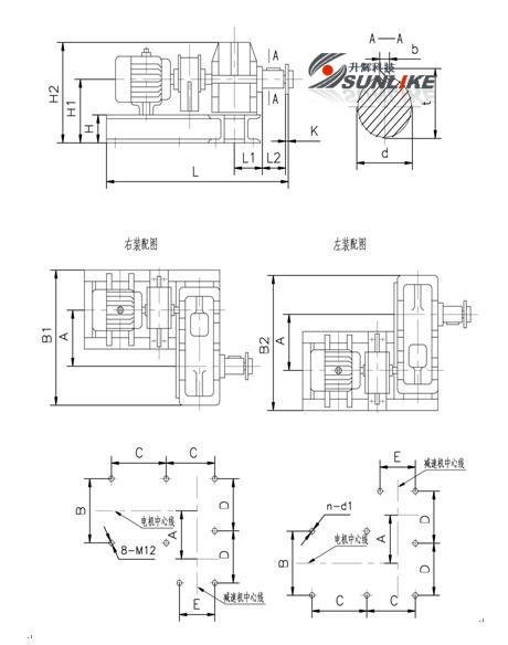 一臺螺旋機通常按驅動裝置、頭節(jié)、若干標準中間節(jié),選配中間節(jié),尾節(jié)順序組成,除頭節(jié)機殼和選配節(jié)外,各節(jié)螺旋及機殼均具有互換性,在出料端螺旋有清料裝置,安裝時注意位置。 驅動裝置由一臺行星擺線針輪減速電機(或JTC減速機)或選用JZQ型減速機承擔,在頭節(jié)前部裝有止推軸承,可承受移動物料時而產(chǎn)生的軸向力,頭節(jié)機殼內設吊軸承及底座,每一中間節(jié)安有一只吊軸承用以支撐螺旋軸,吊軸承內裝有向心球軸承(或整體滑動軸承),在尾節(jié)后部裝有滾動(滑動)軸承用以支撐螺旋和補充螺旋長度的誤差,安裝時應從頭部開始,順序進行。 在總體布置時還應注意,不要使底座和出料口布置在機殼接頭的法蘭處,進料口也不應布置在吊軸承的上方,如果因為開出料口影響底座而安排不能遵循本原則時,使用單位應繪制螺旋機總圖。 四、減速機選用JZQ型的驅動裝置