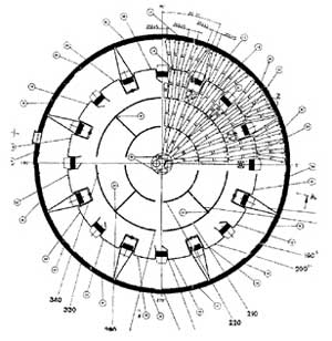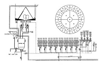CP庫是我公司引進(jìn)的德國BMH公司的一種新型生料均化庫,其特點(diǎn)電耗低、均化效果好。CP庫的均化原理是庫頂生料通過8條斜槽均勻布料,不同時期的生料在庫內(nèi)呈橫向分布,庫底充氣系統(tǒng)設(shè)計更符合生料充氣后的流動性,呈放射狀斜向分布,環(huán)形區(qū)一般分8個區(qū),每隔5分鐘輪流充氣,充氣區(qū)生料因松動及氣流的引導(dǎo)卸入中心區(qū),庫內(nèi)不同層的生料豎向切割下料實(shí)現(xiàn)生料的均化,不同時間的生料進(jìn)入中心區(qū)后再進(jìn)行氣體強(qiáng)烈混合均化,從而達(dá)到理想的均化效果。